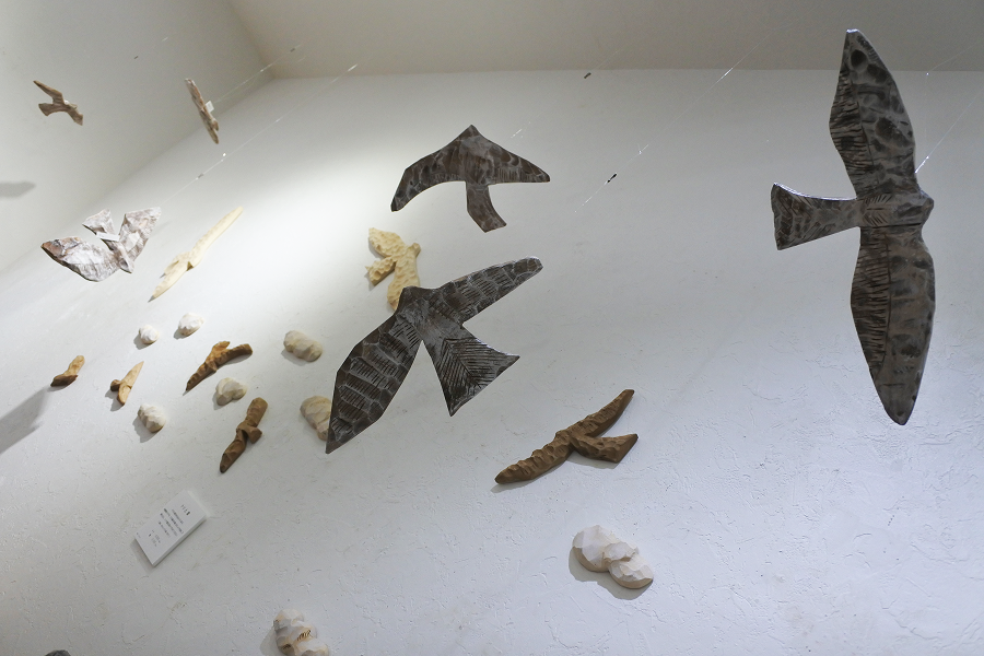 彫刻だけでなく、壁に飾られた絵も前原さんの作品です。