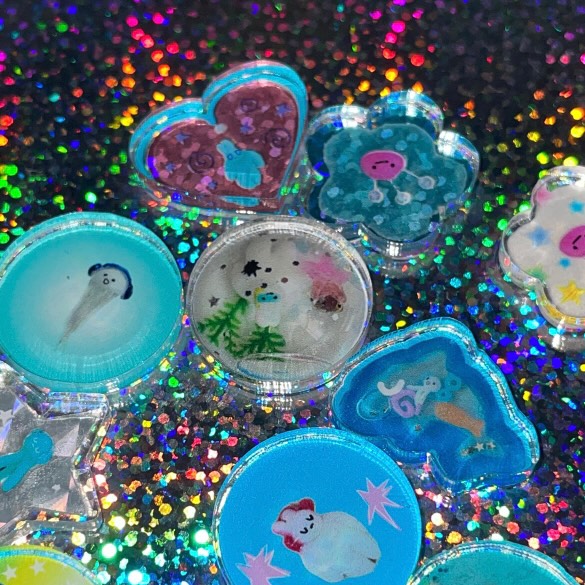 透明感とレトロな雰囲気が融合していて、y2kっぽい世界観が可愛い。その中でぴかぴかと揺れるキャッチーなキャラクターは、ついキーホルダーを揺らして眺めてしまいます。