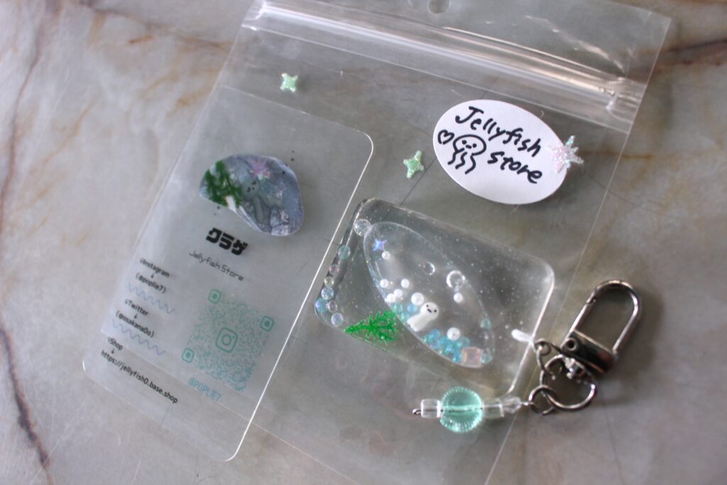 クラゲさんはなんと、キャラクターデザインから、キーホルダー内の細かなパーツまで、すべて手作りで制作されているのだそう。