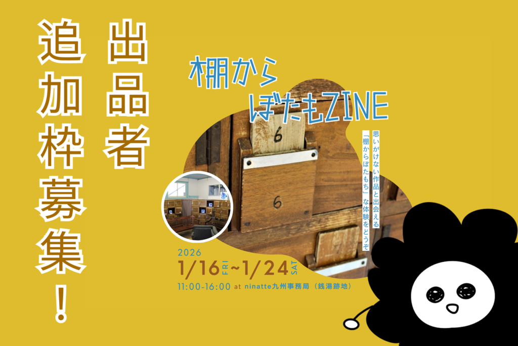 来年1月16日(金)~24日(土)開催の、ninatte九州主催イベント『棚からぼたもZINE』。