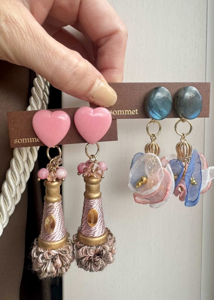 彼女の耳元にも、大ぶりのアクセサリーとイヤーカフが美しく飾られていた。