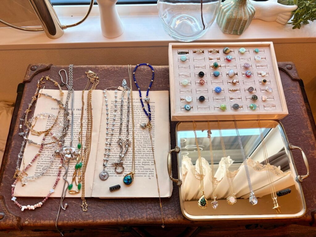窓際に整然と並ぶアクセサリーは、まるで呼吸をしているかのよう。