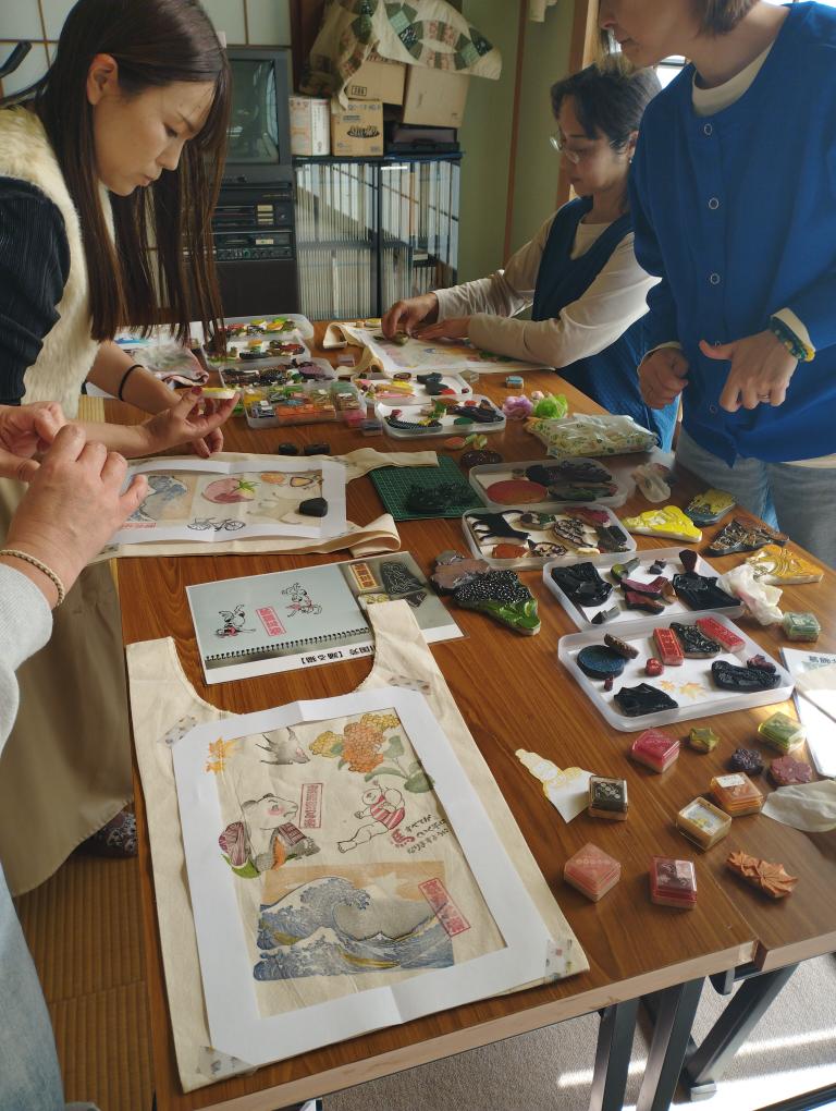 老若男女問わず、彼女のワークショップに来る方たちは消しゴムはんこを押す時間を楽しんで過ごす。
