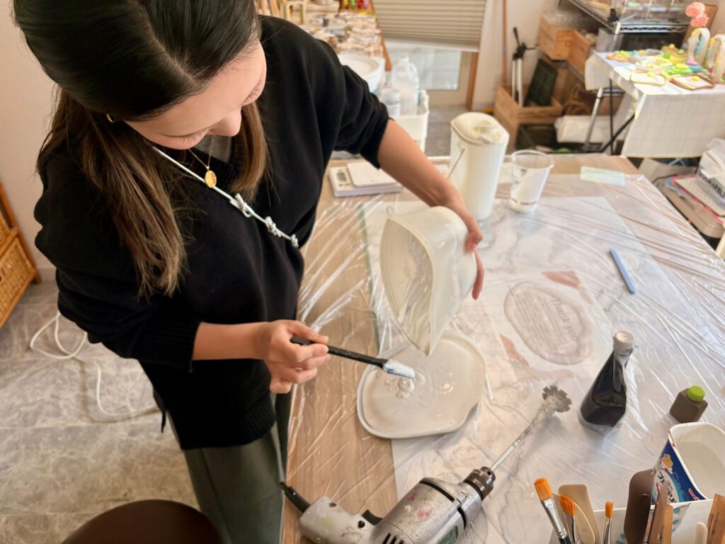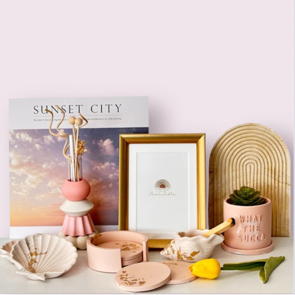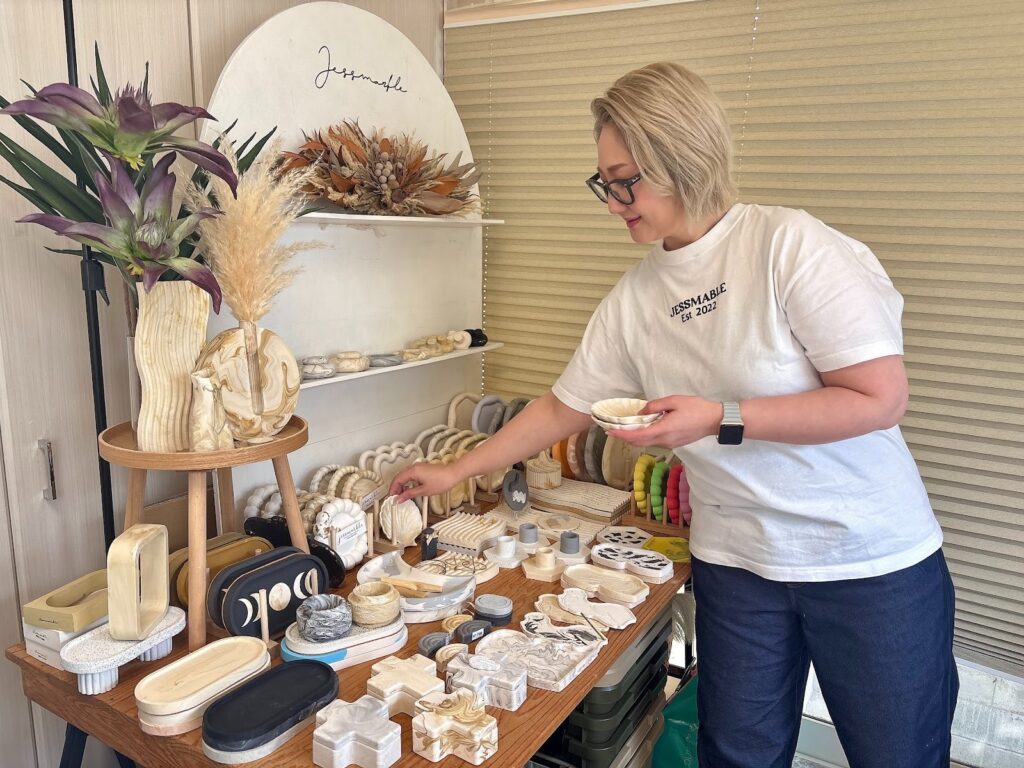 Jessmarbleは、この素材を使って、主にトレーや名刺立て、置物などを制作している。