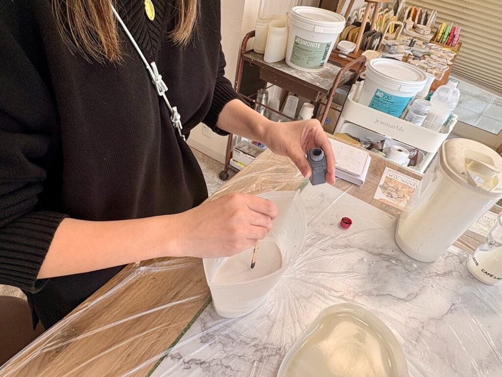 ジェスモナイトは繊細で、気温や湿度、そして混ぜ方ひとつで色や表情が変わってしまうのだそう。