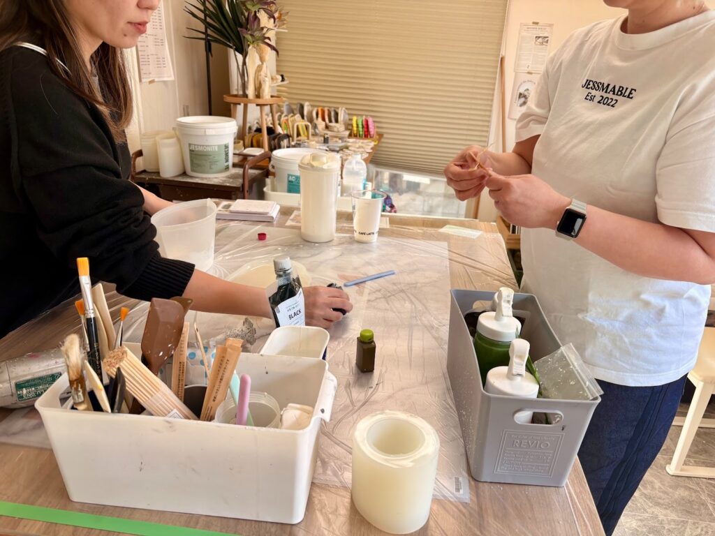 また、石のような質感でありながら軽くて扱いやすく、色や造形表現の幅も広いと同時に、耐久性があって長く使える素材なのだとか。
