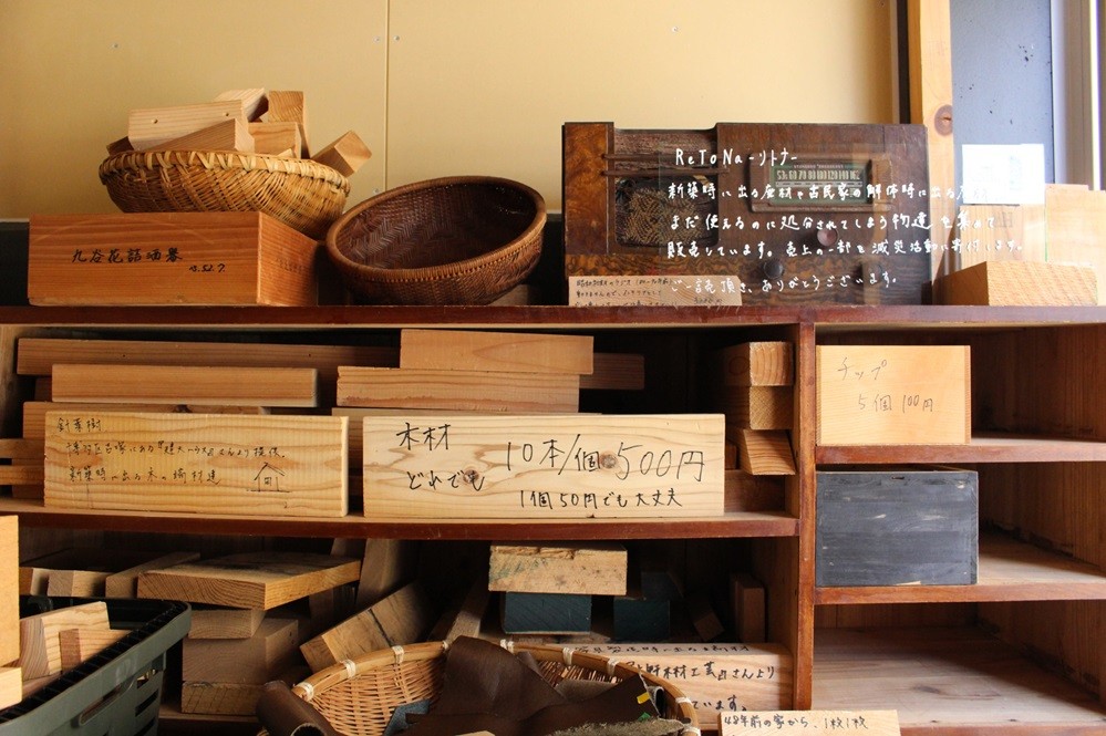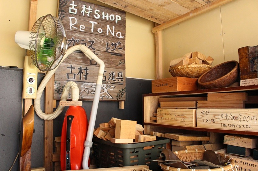 そう笑顔で話してくれたのは、この場所で1坪の廃材無人販売店を営むReToNa(リトナ)の池田尊信さんだ。店内に並ぶ古材・古道具の多くは、池田さん自身が現場に行って頂いてきたものばかりだそう。