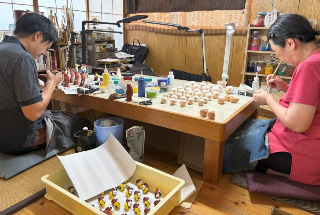忙しい時期は家族で協力し合ってきた。津屋崎人形のつくり手は父である7代目原田誠さん、8代目翔平さん、そして母である千恵さんの3人だけとなり弟子をとることも考えていない。