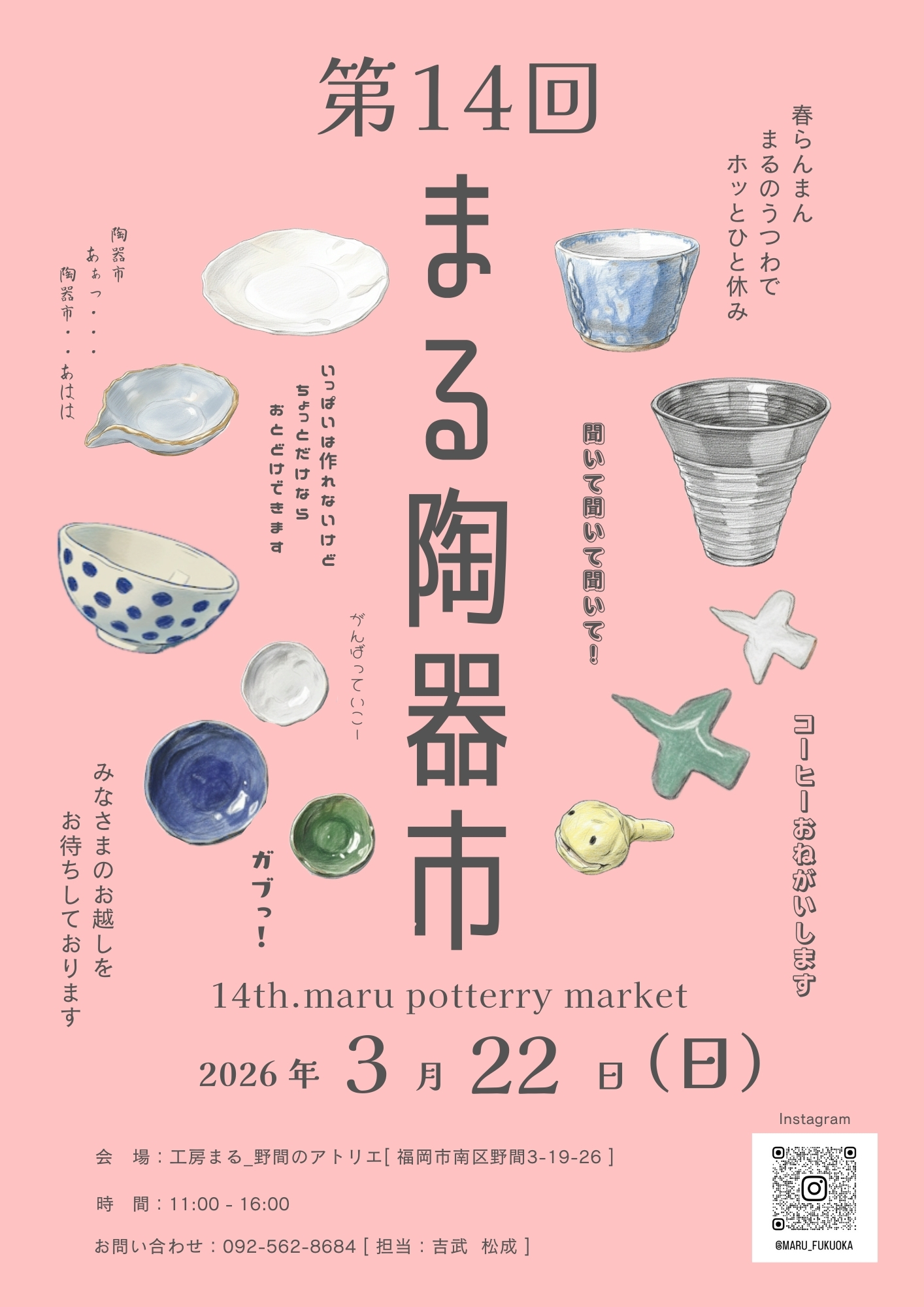 | お問い合わせ先 | TEL 092-562-8684(担当:吉武・松成) E-mail togei.maru@maruworks.org |