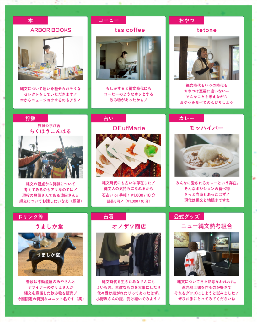 そんないとしい縄文のエッセンスを感じていただけたらうれしいです。そして縄文への入り口 “ニュージョウモン” として、これをきっかけに縄文に思いを馳せる1日になればと思います!