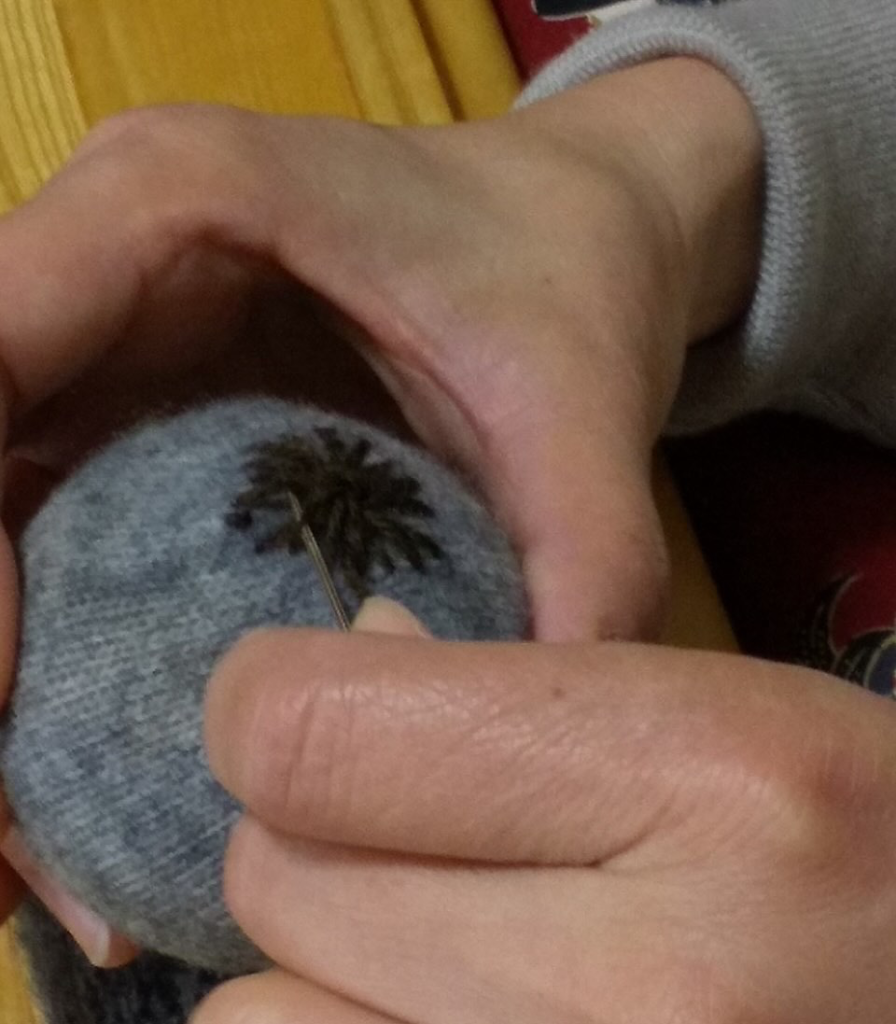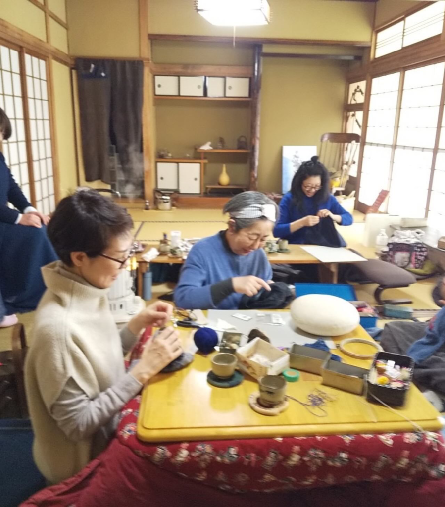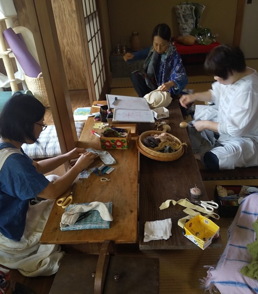 鍼を頭にさされながら、ほつれた衣類を持ってきて、えっちゃんセンスのチクチク技術を伝授されながら、縫い物に没頭したり、お喋りに没頭したり。