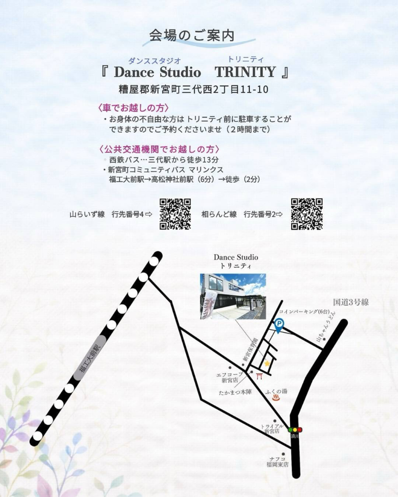 📍会場:ダンススタジオ TRINITY(2階)