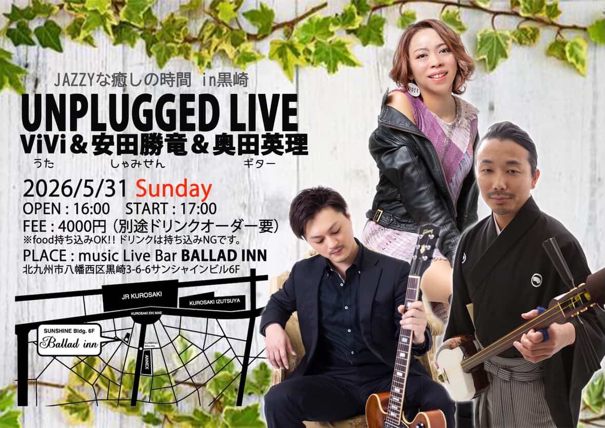 | 開催場所 | music Live Bar BALLAD INN (北九州市八幡西区黒崎3-6-6サンシャインビル6F) |