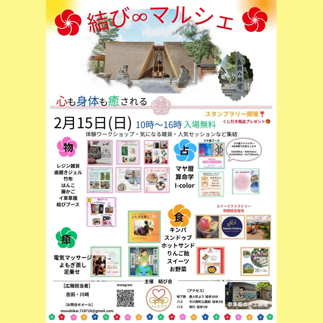 鳥飼八幡宮で開催されるマルシェイベントです。良い縁があなたにも訪れますように♪
