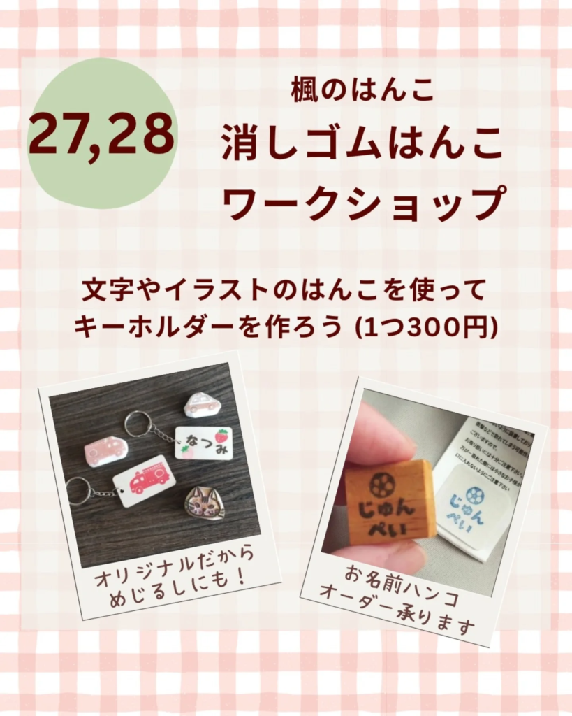 こちらのマルシェには、消しゴムはんこ作家の『楓のはんこ』さんも参加されます。