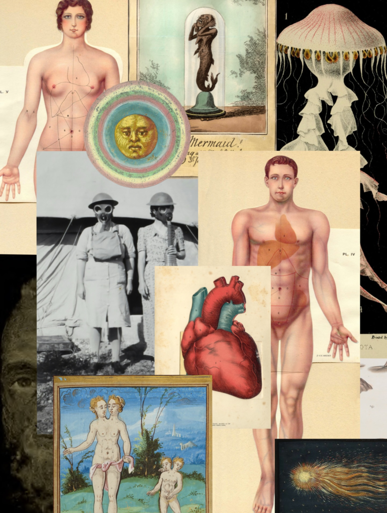 「運命の女性」をテーマにしたコラージュ作品を展示します。