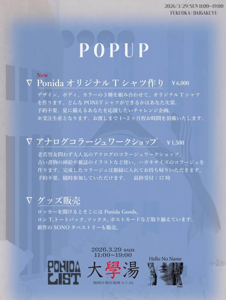 1日限定でPonidaが湯けむりジャック♨️Tシャツ作り、コラージュワークショップも。